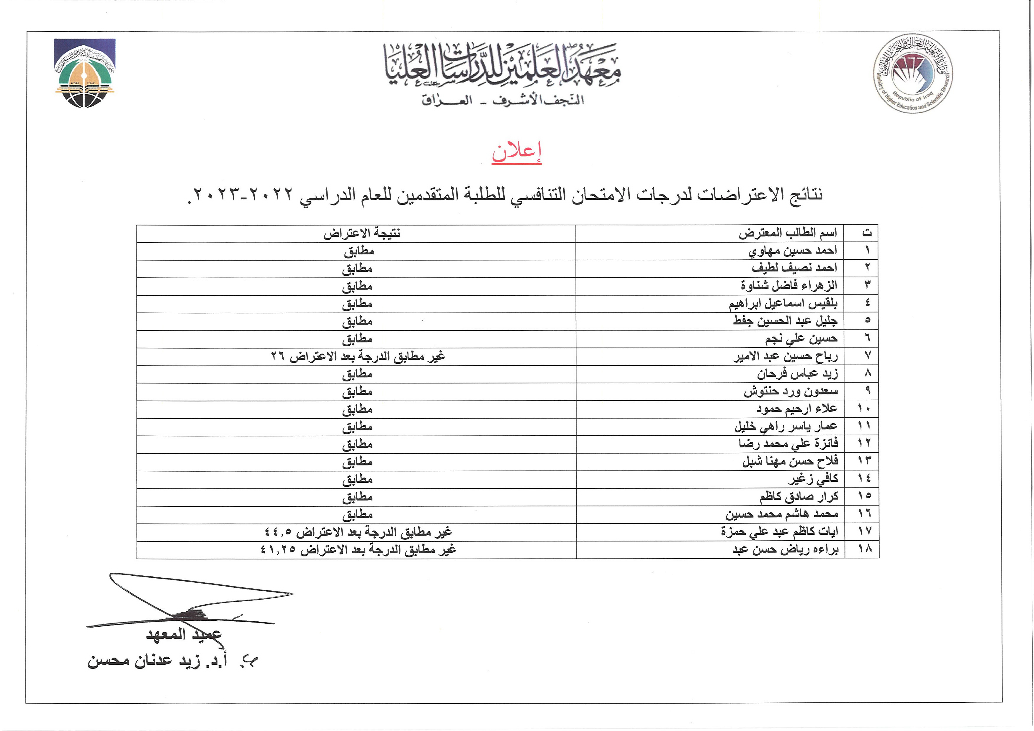 اعلان اعتراضات نتائج الامتحان التنافسي 2022- 2023